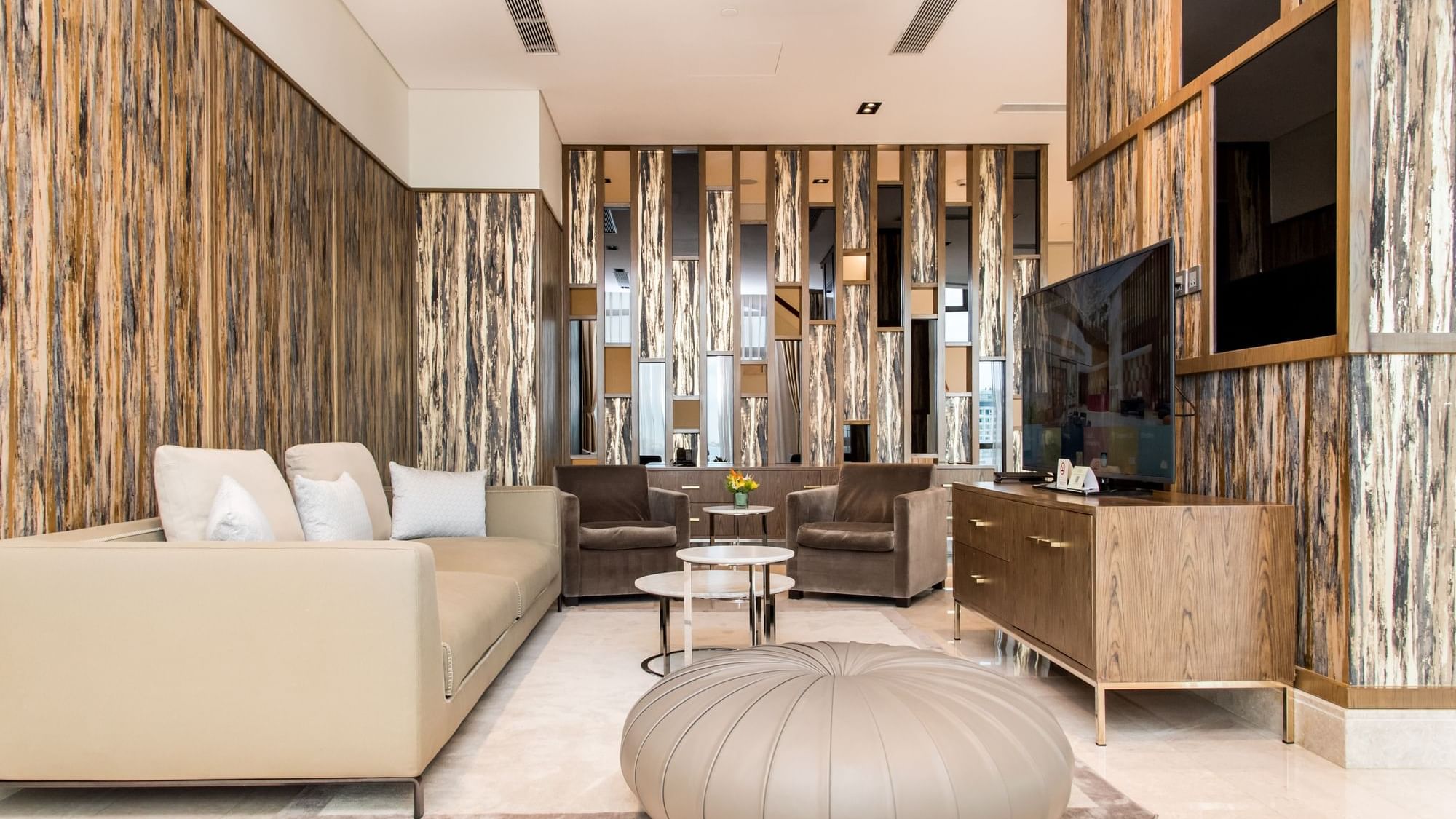 Diện tích sử dụng lên đến 81 mét vuông, căn hộ Executive một phòng ngủ đặc biệt có thêm phòng phụ đa năng được thiết kế làm phòng làm việc hoặc phòng ngủ phụ.
